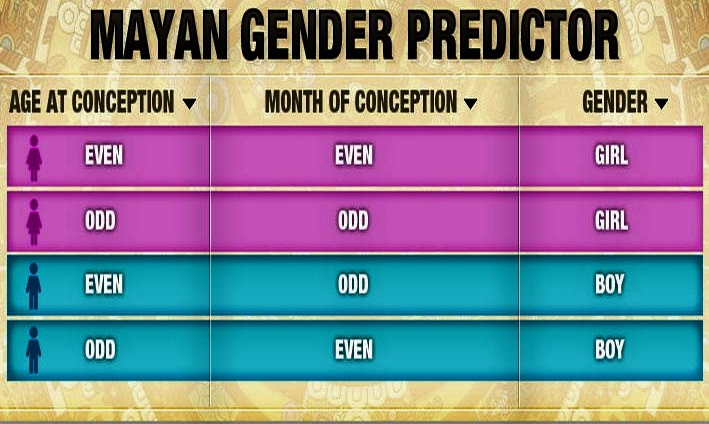 दोस्तों माया सभ्यता वालों के पास एक जेंडर प्रेडिक्शन चार्ट हुआ करता था. जो चार्ट दिखाई पड़ रहा